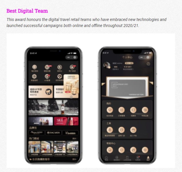“最佳數(shù)字團(tuán)隊(duì)”獎(jiǎng)旨在表彰過去一年內(nèi)全球旅游零售行業(yè)大力倡導(dǎo)數(shù)字創(chuàng)新和先進(jìn)技術(shù),并成功開展線上+線下活動(dòng)數(shù)字營銷的旅游零售團(tuán)隊(duì)。為更好滿足消費(fèi)者需求,中免集團(tuán)結(jié)合微信營銷生態(tài)系統(tǒng),于2020年11月正式上線“中免會(huì)員”微信小程序,經(jīng)過多次迭代和發(fā)展,聚合了工具屬性、內(nèi)容屬性、營銷屬性和電商屬性,為會(huì)員和品牌提供周到細(xì)致的全方位服務(wù)。