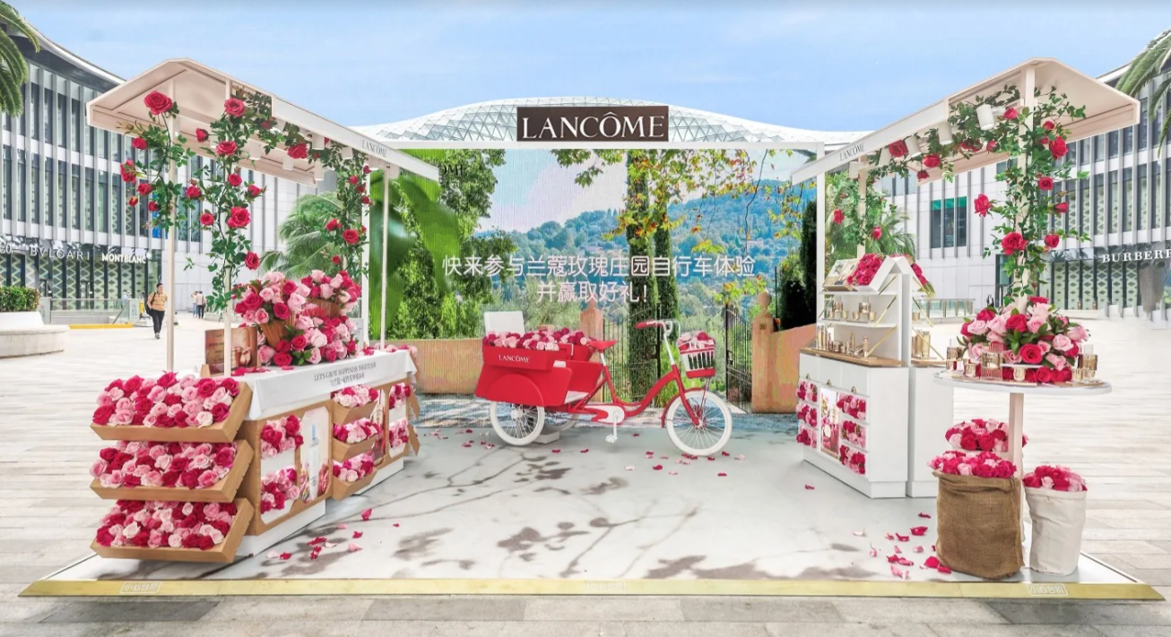 在三亞國際免稅城“一起收獲幸福未來”快閃活動(dòng)中,游客可通過掃描“可持續(xù)餐桌”上的二維碼創(chuàng)建自己的虛擬玫瑰花束。蘭蔻亞太旅游零售部承諾,消費(fèi)者每完成一次互動(dòng)虛擬花束,公司都會(huì)在法國格拉斯玫瑰莊園中種植一株專屬的有機(jī)玫瑰。消費(fèi)者還可以參與蘭蔻玫瑰莊園自行車虛擬體驗(yàn)活動(dòng),欣賞玫瑰莊園的美景,并了解可再生能源生產(chǎn)的相關(guān)知識(shí)。