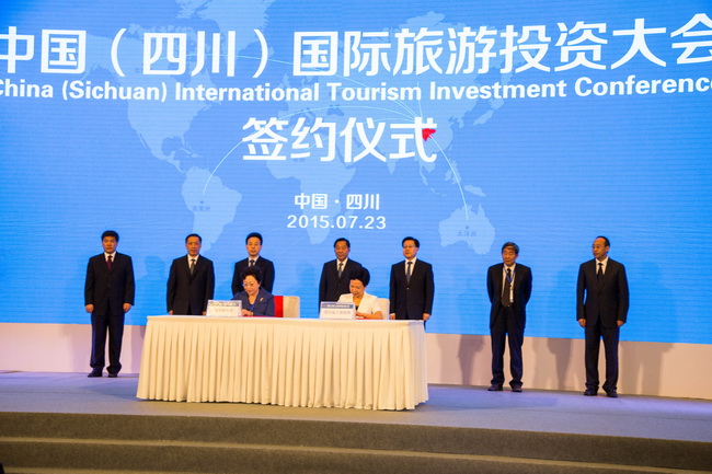 7月23日,集團(tuán)姜巖總經(jīng)理、鄭江副總會(huì)計(jì)師、戰(zhàn)發(fā)部陳賢君總經(jīng)理、資產(chǎn)板塊田群總經(jīng)理、景區(qū)板塊曲濤常務(wù)副總經(jīng)理等一行參加了在成都舉辦的“中國(guó)(四川)國(guó)際旅遊投資大會(huì)”。會(huì)上,姜巖總經(jīng)理代表集團(tuán)與四川省政府簽訂了《促進(jìn)中國(guó)港中旅集團(tuán)與四川省政府關(guān)於旅遊業(yè)發(fā)展戰(zhàn)略合作協(xié)定》。四川省委書(shū)記王東明、省長(zhǎng)魏宏、國(guó)家旅遊局局長(zhǎng)李金早、中國(guó)房地產(chǎn)業(yè)協(xié)會(huì)會(huì)長(zhǎng)劉志鋒等領(lǐng)導(dǎo)出席會(huì)議。中國(guó)國(guó)旅集團(tuán)董事長(zhǎng)兼總經(jīng)理王為民、華僑城集團(tuán)公司副總裁劉平春 、大連萬(wàn)達(dá)集團(tuán)董事長(zhǎng)王健林、新希望集團(tuán)董事長(zhǎng)劉永好等120多家境內(nèi)外知名旅遊企業(yè)負(fù)責(zé)人參加了會(huì)議。