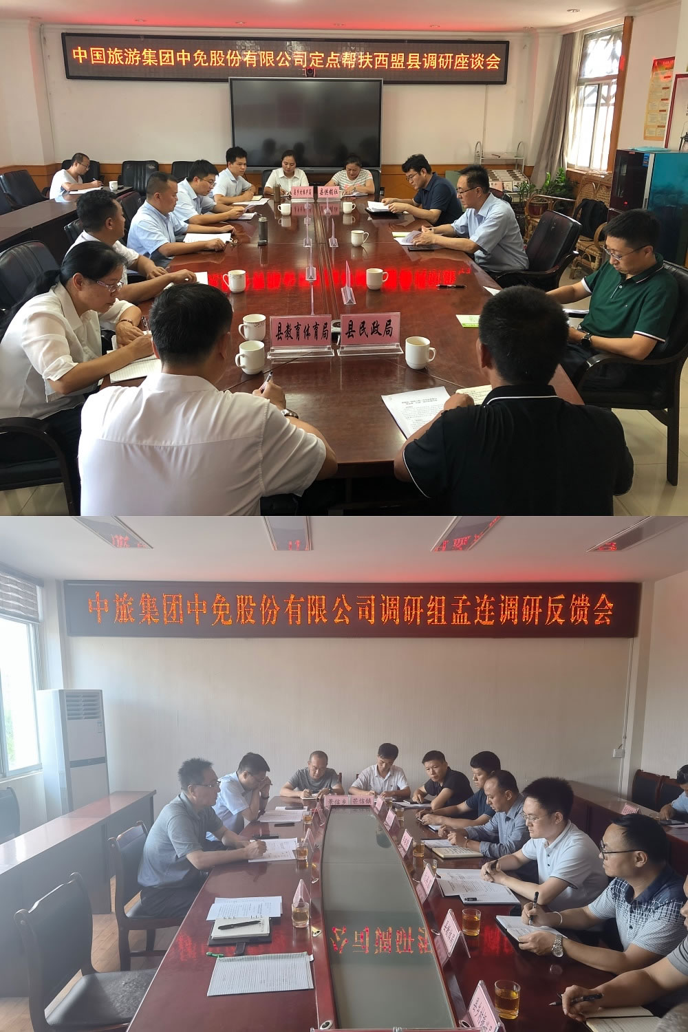 2021年7月6日至9日,中旅免稅黨委書記、董事長彭輝、黨委副書記王月浩一行赴云南省孟連縣、西盟縣開展幫扶工作調(diào)研,重點(diǎn)調(diào)研中旅免稅2021年擬在兩個(gè)縣開展的旅游主業(yè)幫扶、特色產(chǎn)業(yè)幫扶、教育幫扶等相關(guān)工作,并召開座談會(huì),就2021年孟連縣、西盟縣持續(xù)抓好鞏固脫貧攻堅(jiān)成果接續(xù)鄉(xiāng)村振興工作與兩縣縣委、縣政府進(jìn)行深入交流。