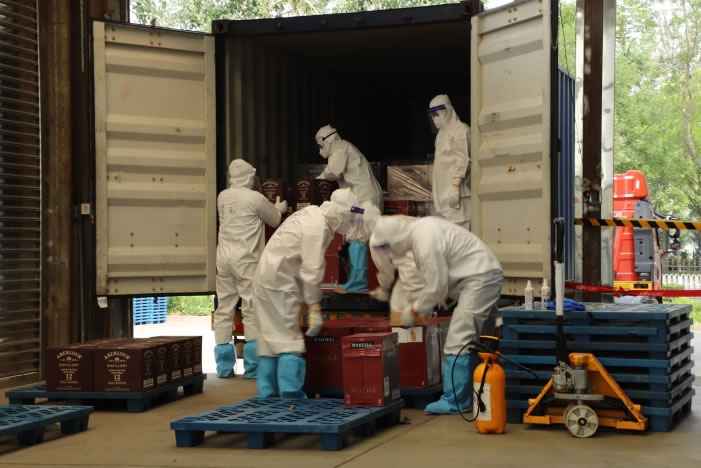 近日,又一批海運集裝箱抵達物流基地。首都機場聯(lián)合黨支部成立的黨員先鋒隊配合執(zhí)行消殺卸貨工作。大家先對集裝箱進行徹底無死角的全面消殺,隨后將貨物分批搬運、拆箱,對貨物單個最小包裝物進行逐一消殺,最后再統(tǒng)一裝箱。歷時5個小時,將全部貨物消殺完畢,為后續(xù)工作建立了第一道安全保障。