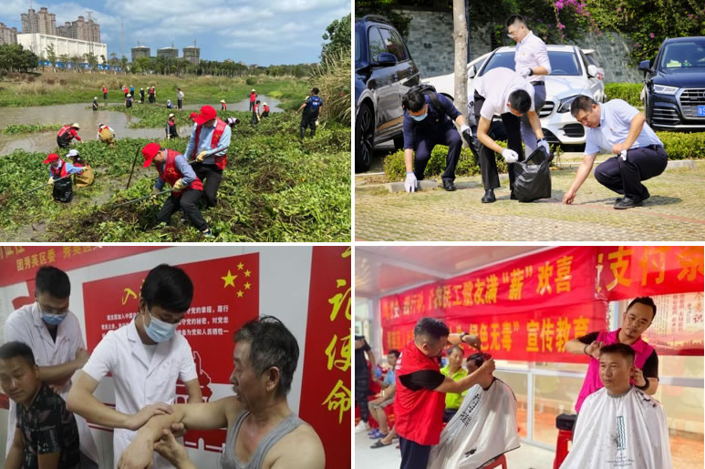中免(??冢┩顿Y公司黨支部聚焦服務(wù)工程建設(shè)、豐富企業(yè)文化、踐行社會責任等方面把實事辦實辦好。為海口國際免稅城項目員工“送清涼”,購置了防暑防曬物資,備好冰鎮(zhèn)綠豆湯,不定期推出“驚喜菜”。精心打造“黨史文化墻”,設(shè)立“圖書角”,開展“微課堂”讀書活動,為員工訂閱報紙期刊,開展職工趣味運動會、友誼籃球賽,全面更新公司形象展示標識和宣傳欄,設(shè)置新人榜,不斷打造企業(yè)文化新亮點。黨支部聯(lián)合當?shù)毓?、共青團等機構(gòu)共同開展環(huán)保志愿活動和公益普法活動,提供免費體檢、義剪服務(wù),以實際行動關(guān)愛自貿(mào)港基層建設(shè)者,彰顯央企風范。