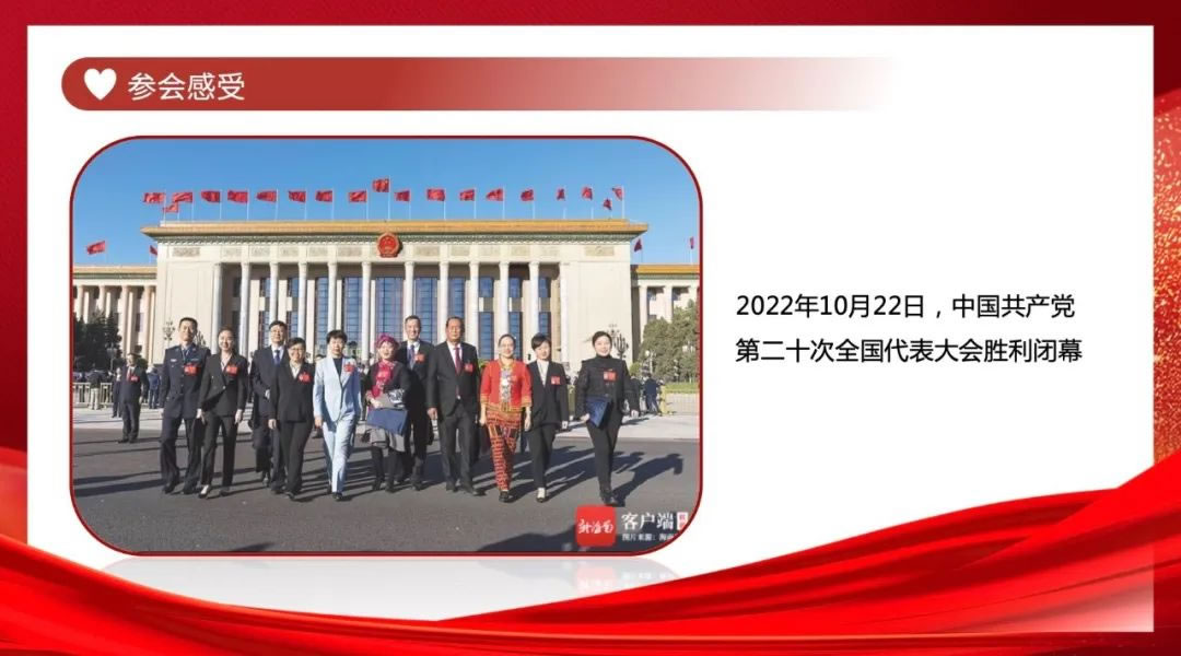 宣講會(huì)上,她分享了參加黨的二十大的所見所聞所感,并從新時(shí)代青年、基層黨員、海南旅游零售行業(yè)從業(yè)者三個(gè)身份,就如何貫徹黨的二十大精神分享學(xué)習(xí)體會(huì)。