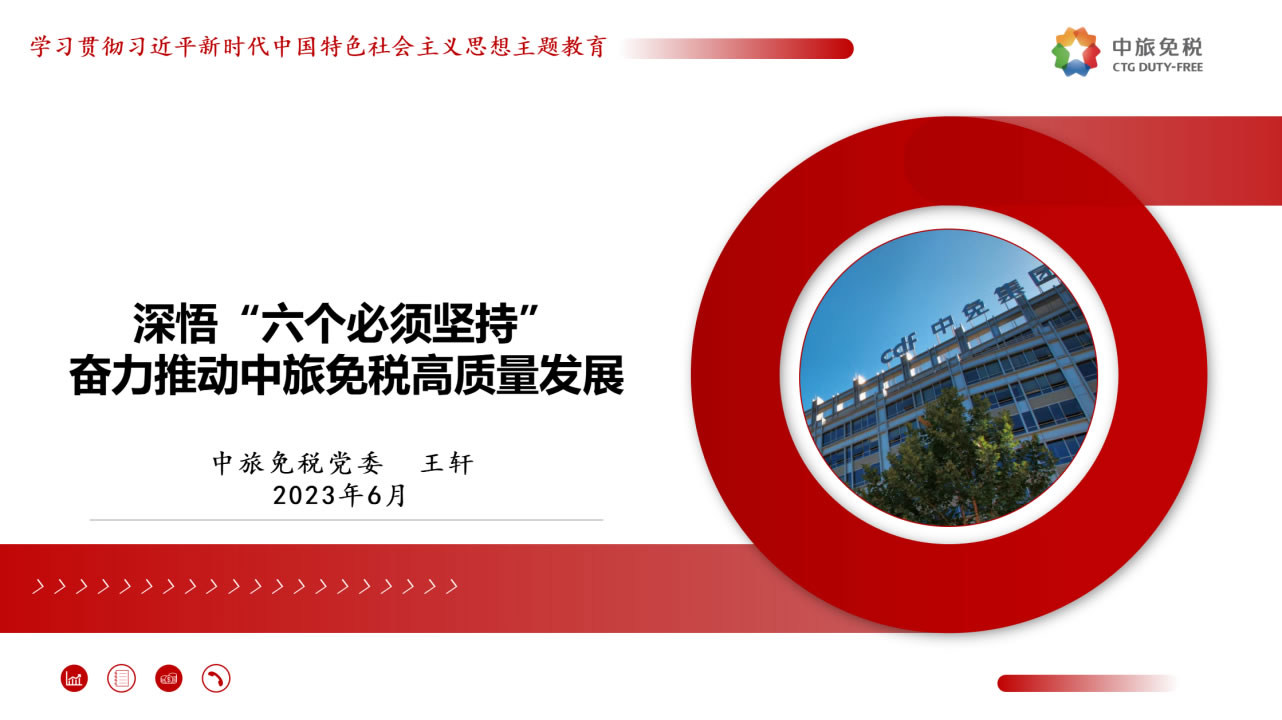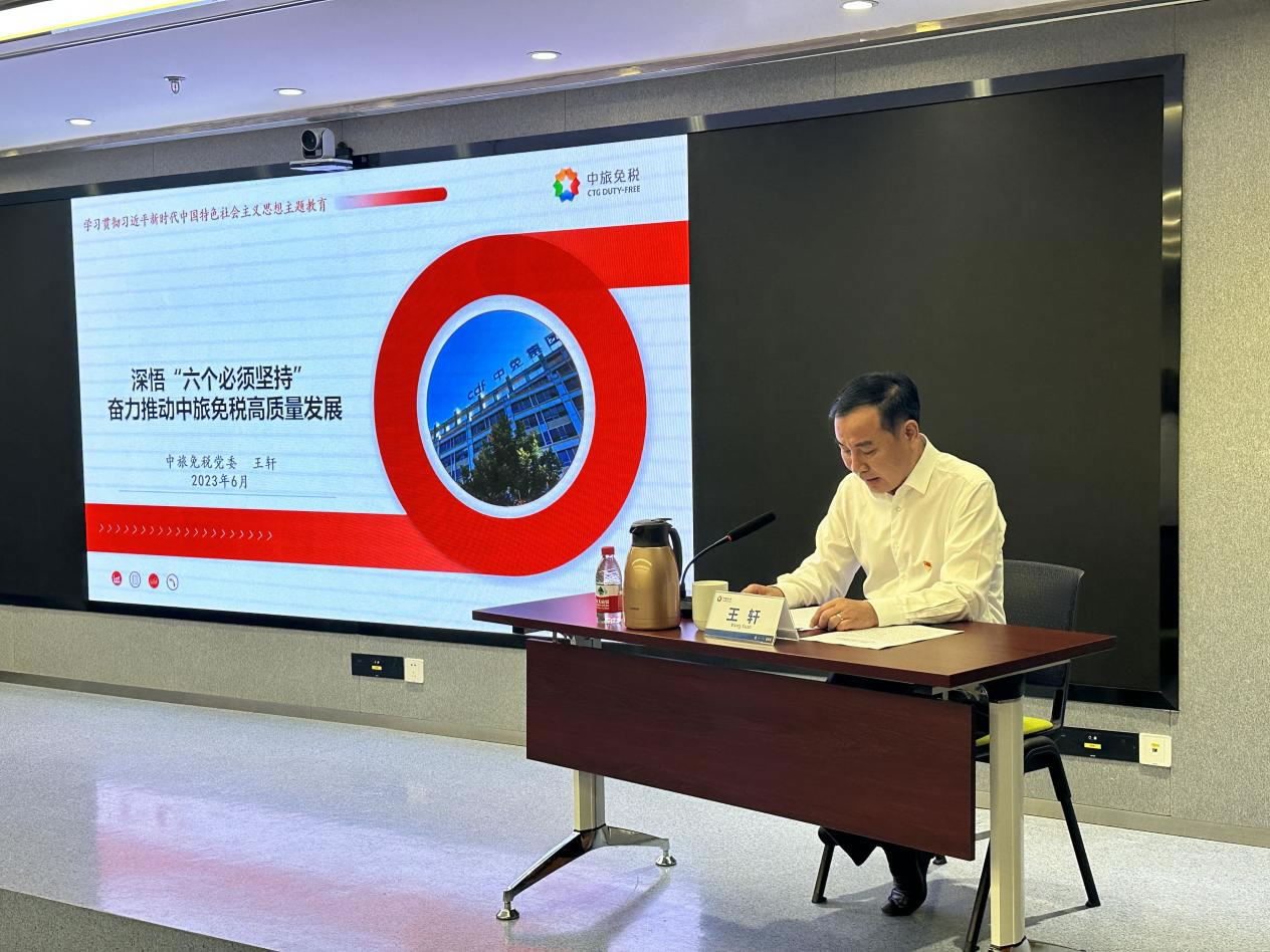 為貫徹落實習(xí)近平總書記提出的“領(lǐng)導(dǎo)干部要上講臺、講黨課,以身作則、以講促學(xué)”的政治要求,按照黨中央關(guān)于主題教育部署要求和集團(tuán)黨委工作安排,6月25日上午,中旅免稅黨委書記、總經(jīng)理、主題教育領(lǐng)導(dǎo)小組組長王軒同志以《深悟“六個必須堅持”奮力推動中旅免稅高質(zhì)量發(fā)展》為題,講授學(xué)習(xí)貫徹習(xí)近平新時代中國特色社會主義思想主題教育專題黨課。中旅免稅黨委委員、副總經(jīng)理王延光主持。集團(tuán)主題教育第一巡回指導(dǎo)組成員楊翠華、李征、劉展愷線上列席指導(dǎo)。