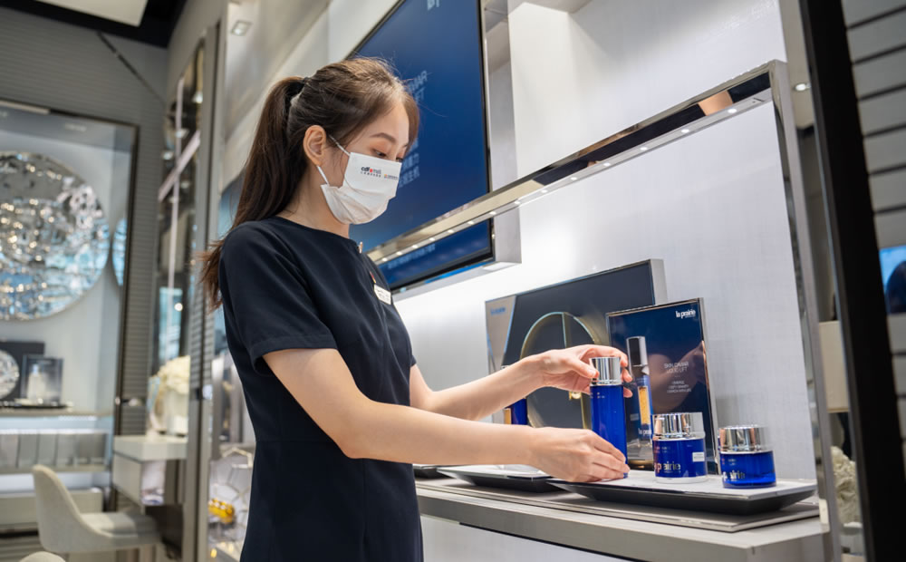 在A區(qū)一層香化區(qū),紅色的黨員先鋒崗收銀臺十分醒目?!拔覀冞€會在節(jié)假日客流高峰期主動支援,解決賣場排隊過長問題。在香奈兒門口設立了孕婦和軍人優(yōu)先結(jié)賬收銀臺。此外,我會組織黨員、入黨積極分子、入黨申請人,利用自己空余時間協(xié)助HPP開店及搬柜工作?!眲⒅橇Ρ硎?。