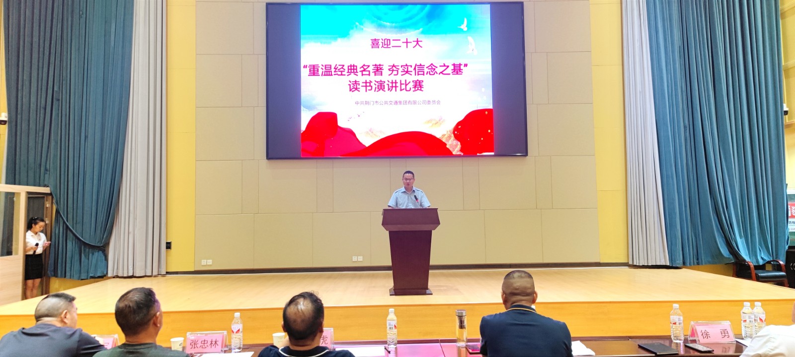 ? ? 最后,市政府國資委黨委委員、副主任張斌代表國資委黨委發(fā)表了講話。首先,他對受到表彰的先進個人和集體表示祝賀,并就公交2021年以來公交改革發(fā)展中作出的成績予以了肯定,并寄予了四點殷切希望:一是要讓“讀經(jīng)典、講經(jīng)典、寫經(jīng)典”成為日常生活的一種常態(tài);二是要鞏固擴大“重溫經(jīng)典名著 夯實信念之基”讀書分享活動成果;三是掀起黨史學習教育熱潮,深入推動黨員干部下基層察民情解民憂暖民心實踐活動深入開展;四是要結合當前是公交后疫情時代千方百計增收入、紓困解難求發(fā)展的關鍵時期,立足本職崗位,堅定理想信念,用于擔當作為、奮力開拓創(chuàng)新公交發(fā)展凝聚起強大的精神動力。最后,他預祝“重溫經(jīng)典名著 夯實信念之基”讀書演講比賽取得圓滿成功,參賽選手們賽出成績、賽出水平、賽出風格。