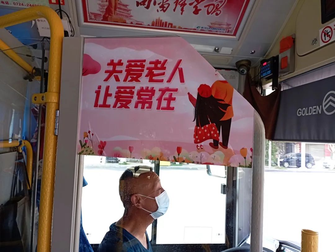 作為公司首條公交“敬老示范線”,1路車輛上的許多細(xì)節(jié),都體現(xiàn)著對老年人的關(guān)懷。車廂內(nèi),駕駛室門、座位間靠背都貼有尊老敬老的標(biāo)語,宣傳敬老文明思想,營造和諧溫馨氛。