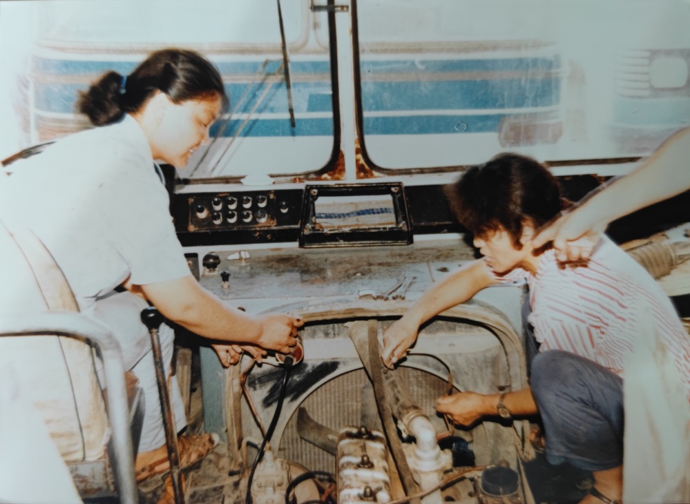 ▲80年代,車間修理工檢修模樣。手上拿著自制試燈(試電筆)檢測著車輛線路,臉上洋溢著那個年代的笑容,是樸實、是堅毅。女性修理工可不多見。