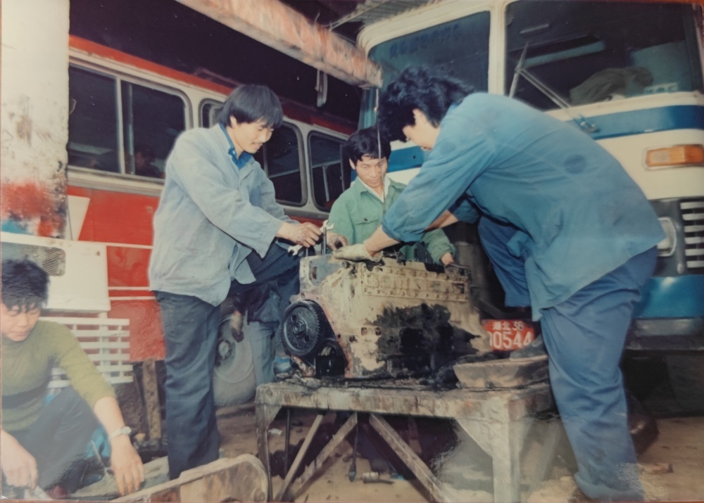 ▲00年代,修理工作業(yè)模樣。2代修理工共同作業(yè),后輩團結協(xié)作,專注修理;前輩樸實穩(wěn)重,授業(yè)解惑。