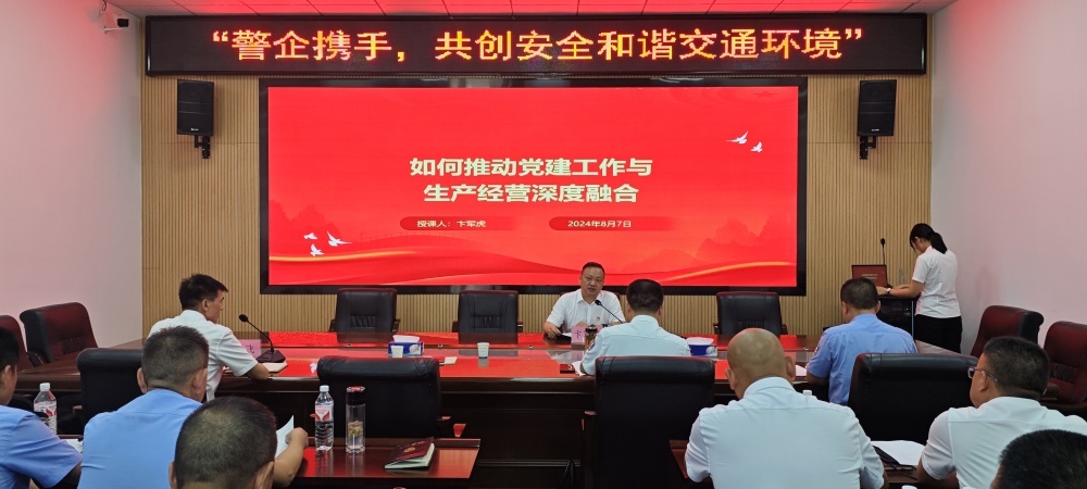 卞軍虎以《如何推動黨建工作與生產(chǎn)經(jīng)營深度融合》為題,從“五個堅持,四個必須”全面分享了集團推動黨建工作和中心工作深度融合的具體實踐和有效措施。同時表明了集團黨委在“共創(chuàng)安全和諧交通環(huán)境”工作中愿意主動接受公眾和交警監(jiān)督的態(tài)度,希望加強與市公安局交通警察支隊掇刀大隊黨支部聯(lián)學聯(lián)做形式,在下一步集團“黨員示范線”黨建品牌創(chuàng)建中給予指導和支持。