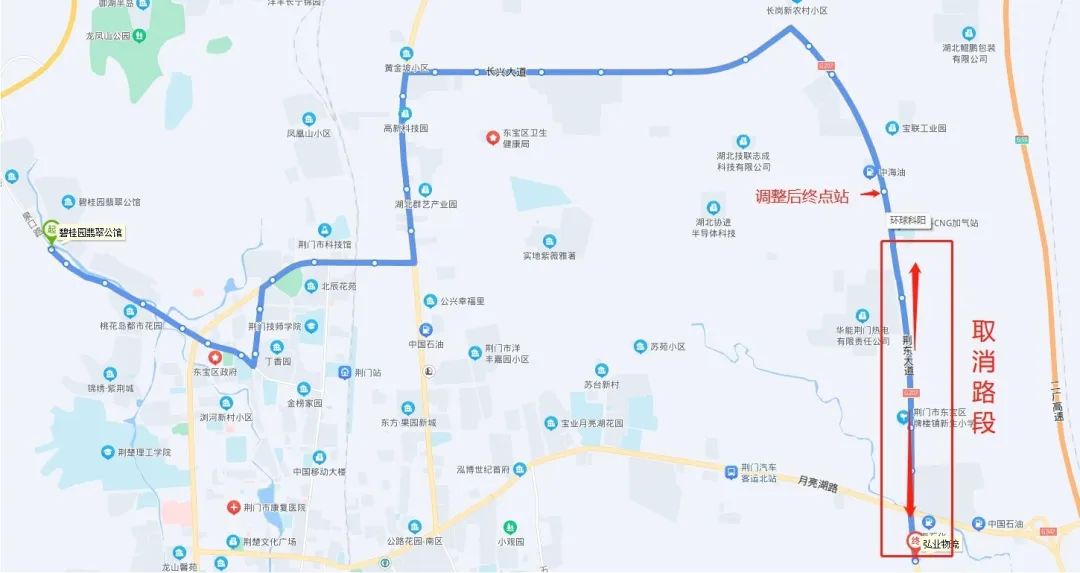 具體為:碧桂園翡翠公館—宏業(yè)物流調(diào)整為碧桂園翡翠公館—環(huán)球科陽(荊東大道),暫時取消荊東大道與長崗一路交匯處—宏業(yè)物流區(qū)間路段(具體走向圖見附件)。道路施工結(jié)束后即恢復(fù)原線路運(yùn)行。
